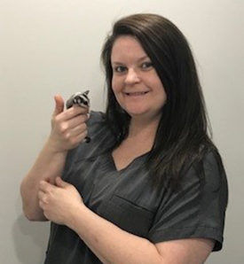 Amber’s love for animals started at a young age. She would bring animals home that she found and would help them, Amber started out in the veterinary field as a co-op student and then stayed on as a vet/tech assistant. Amber’s love for animals grew as she has a small hobby farm with a horse named Cinnamon and many chickens. It is growing as her daughter Lilly likes to bring home every animal she sees. Lilly has a rabbit, “Nikkie” and a rescue cat “Jimmy Beans”. Amber enjoys the outdoors, fishing, boating, riding her horse and paddle boarding.
